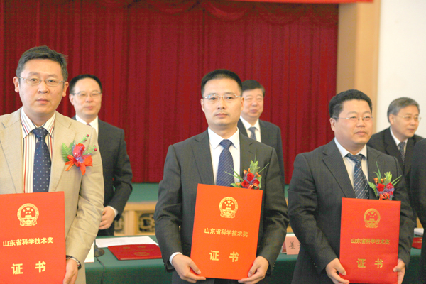 4月18日,山東省省委、省政府在濟(jì)南召開全省科學(xué)技術(shù)獎(jiǎng)勵(lì)大會(huì),表彰為全省科技創(chuàng)新和現(xiàn)代化建設(shè)作出突出貢獻(xiàn)的單位和科技工作者。省委書記姜異康出席會(huì)議,省委副書記、省長郭樹清講話。省委常委、常務(wù)副省長孫偉主持會(huì)議,省領(lǐng)導(dǎo)柏繼民、陳光出席會(huì)議,并共同為獲獎(jiǎng)代表頒獎(jiǎng)。