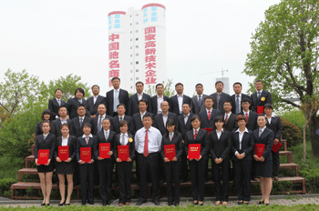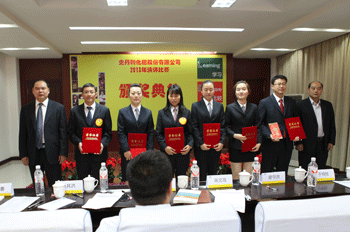 總裁高進(jìn)華等領(lǐng)導(dǎo)與獲獎(jiǎng)?wù)吆嫌?/p>