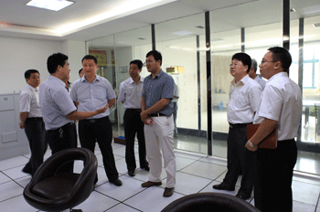 高進(jìn)華總經(jīng)理(左三)、楊其洪副總經(jīng)理(右一)陪同下參觀信息化中心